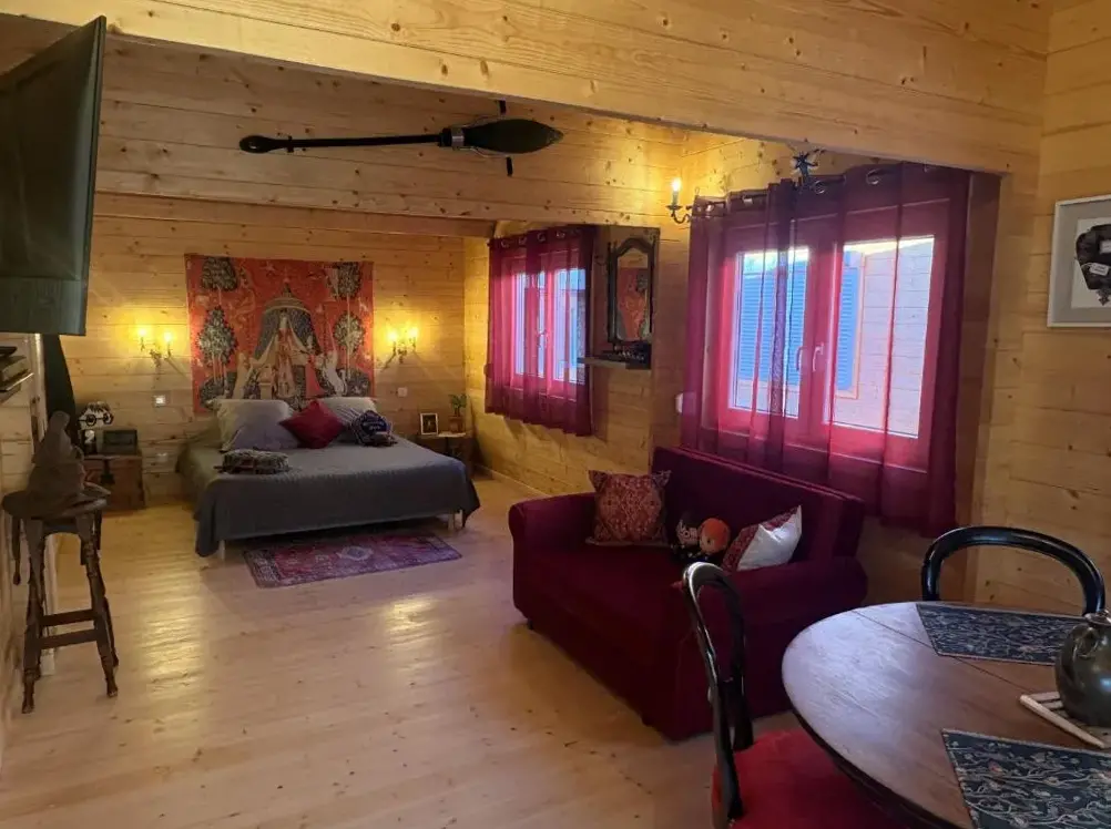 Chalet di charme a Boutenac: HARRY POTTER-Chalet du Sanglier Magique offre un'incantevole esperienza in chalet a Boutenac, in Francia. A disposizione degli ospiti una terrazza solarium, un rigoglioso giardino e la connessione Wi-Fi gratuita in tutta la struttura. Spazi abitativi confortevoli: lo chalet dispone di una camera da letto, un bagno e un ampio soggiorno. I servizi includono aria condizionata, angolo cottura e zona pranzo. Per gli ospiti è disponibile un parcheggio privato gratuito in loco. Attività all'aperto: gli ospiti possono usufruire del noleggio dell'attrezzatura da badminton, dell'area salotto all'aperto e dell'area picnic. Le passeggiate e le escursioni sono attività molto praticate nella zona circostante. Attrazioni locali: l'Abbazia di Fontfroide si trova a 15 km, la Reserve Africaine de Sigean a 28 km e le Termes Chateau a 42 km dalla struttura. L'aeroporto di Carcassonne è a 52 km di distanza.